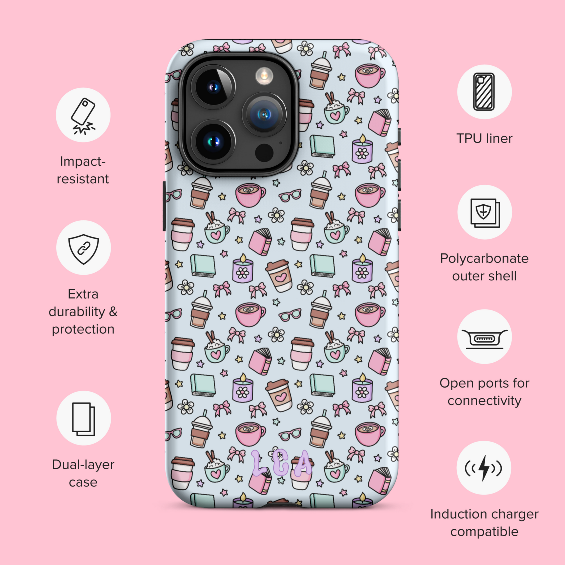 ♡ Bring your love of books everywhere you go with this ✨ Bookish Lover Phone Case! ✨ Designed with bookworms in mind, this case features an adorable pastel pattern of 📚 books, ☕ coffee cups, 🌸 flowers, 🎀 bows, 🕶️ glasses, and ⭐ stars—everything a cosy reader could dream of.