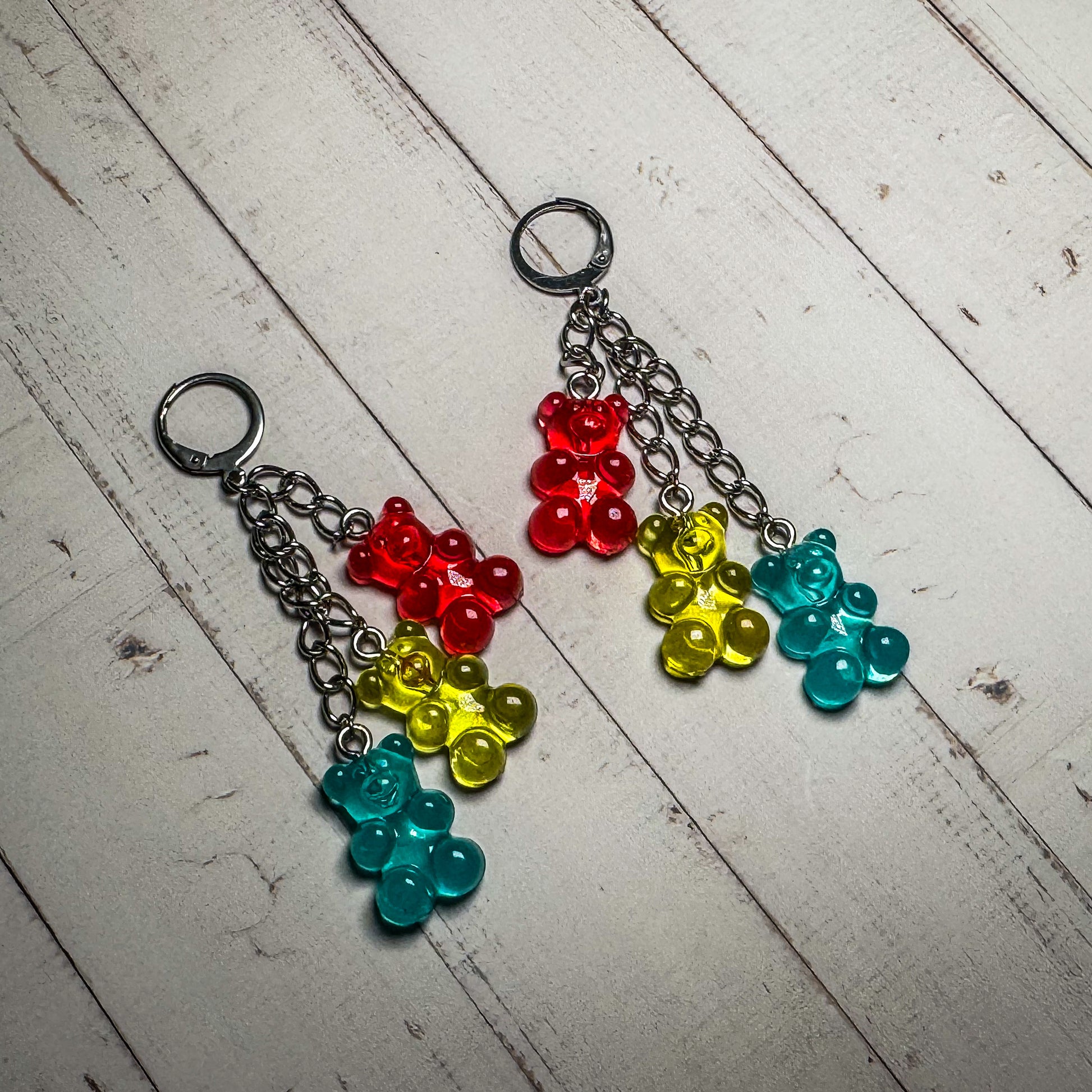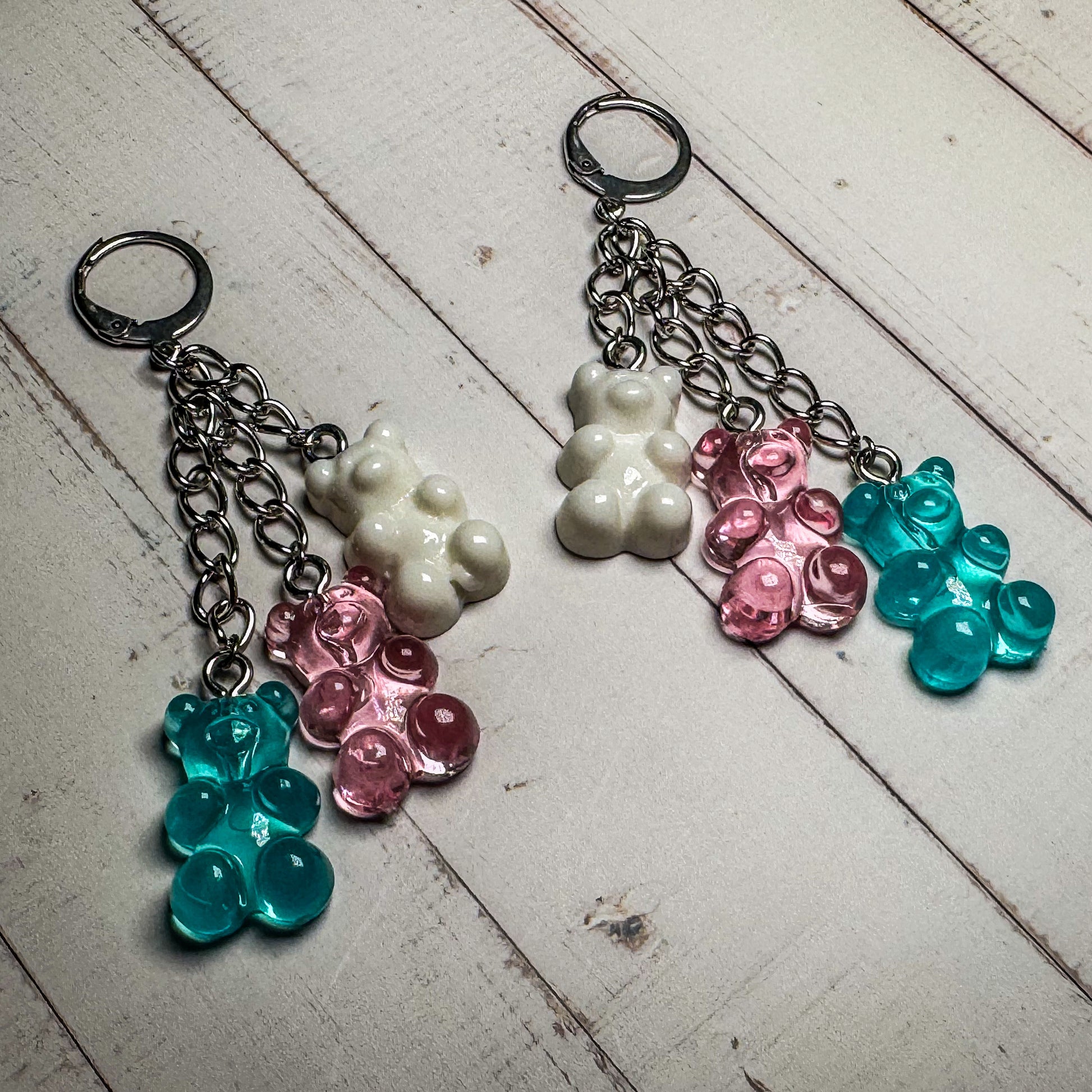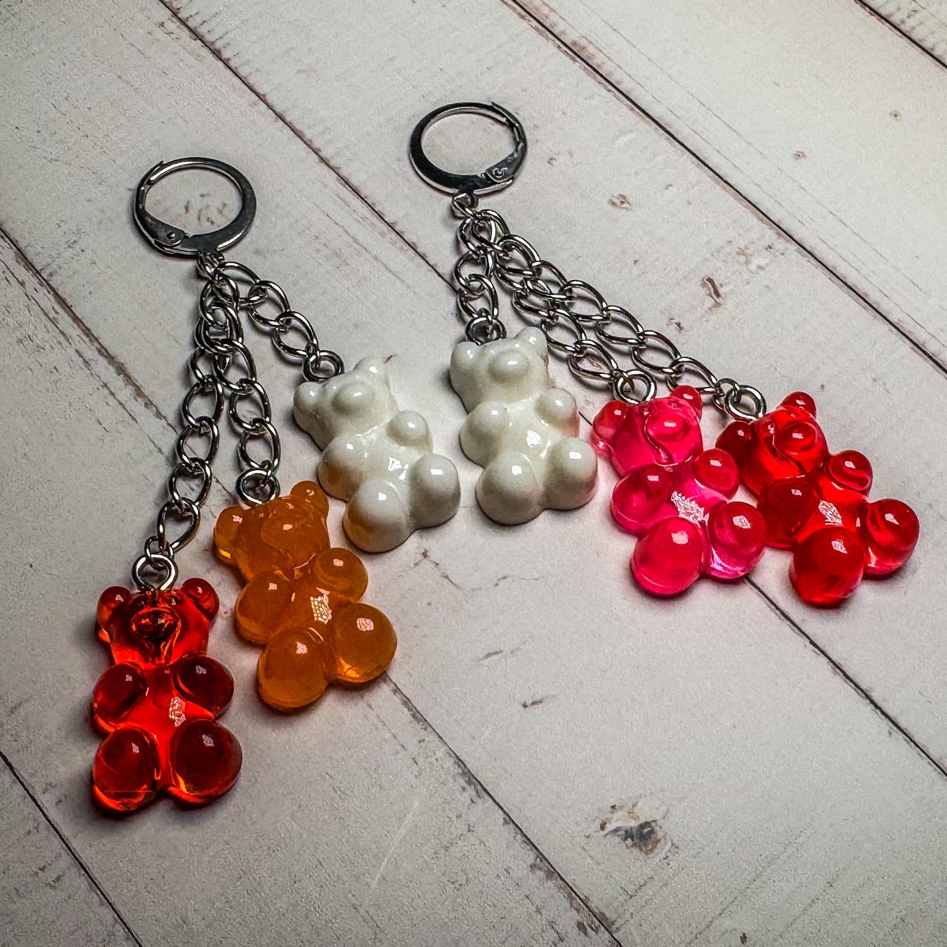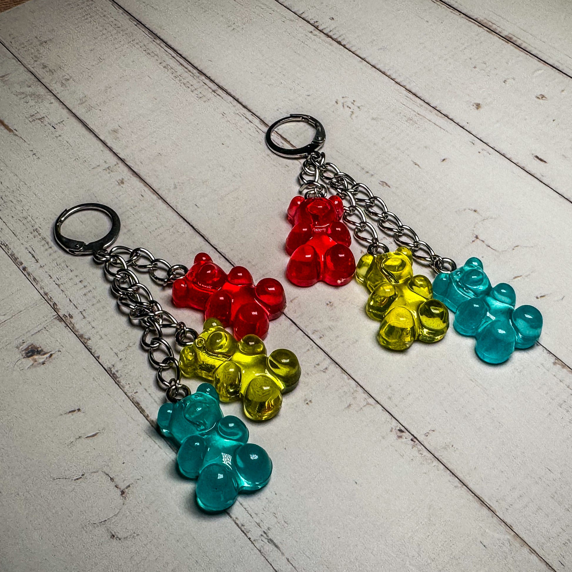 Pendientes colgantes de resina con forma de osito de goma y cierre de clip tipo aro 🌟