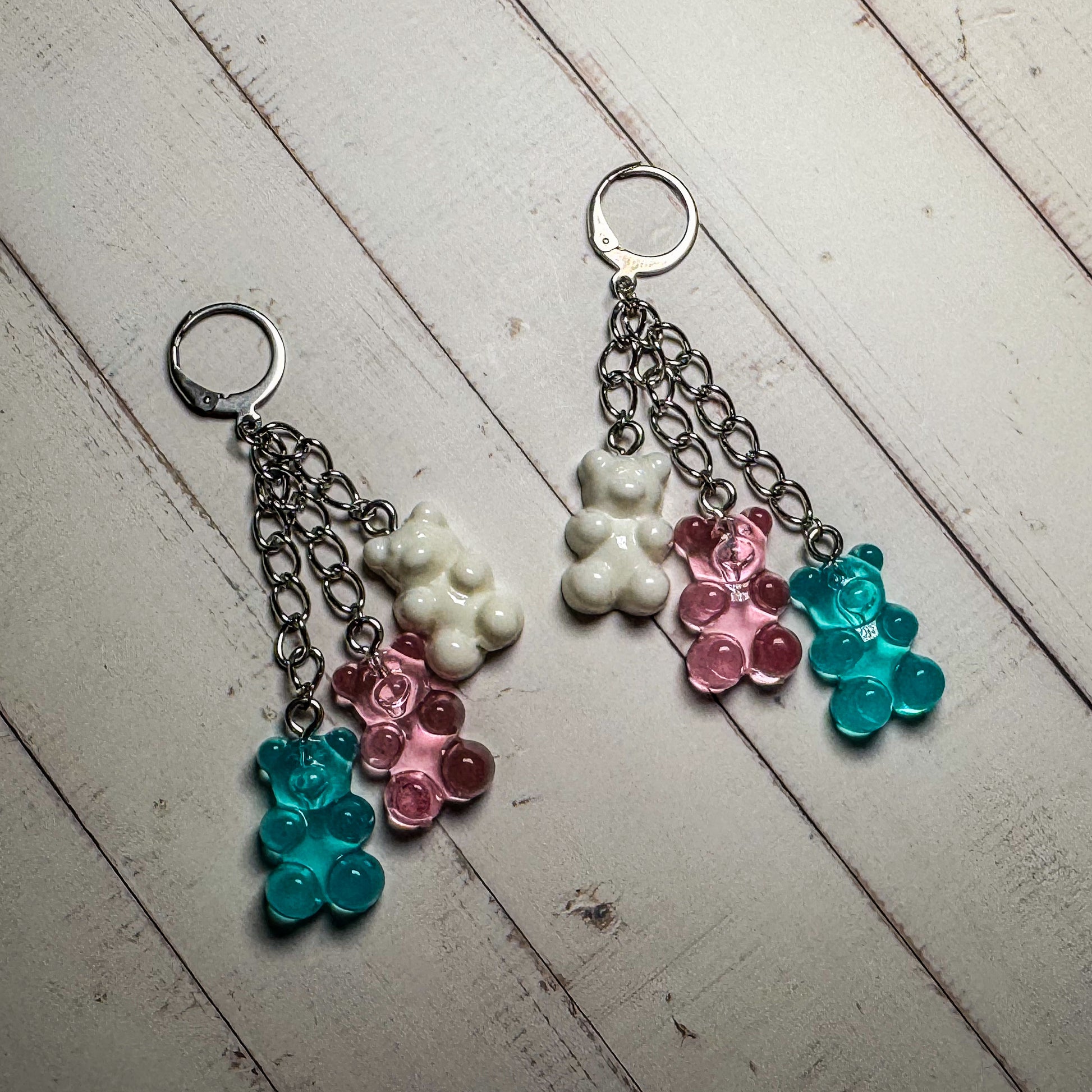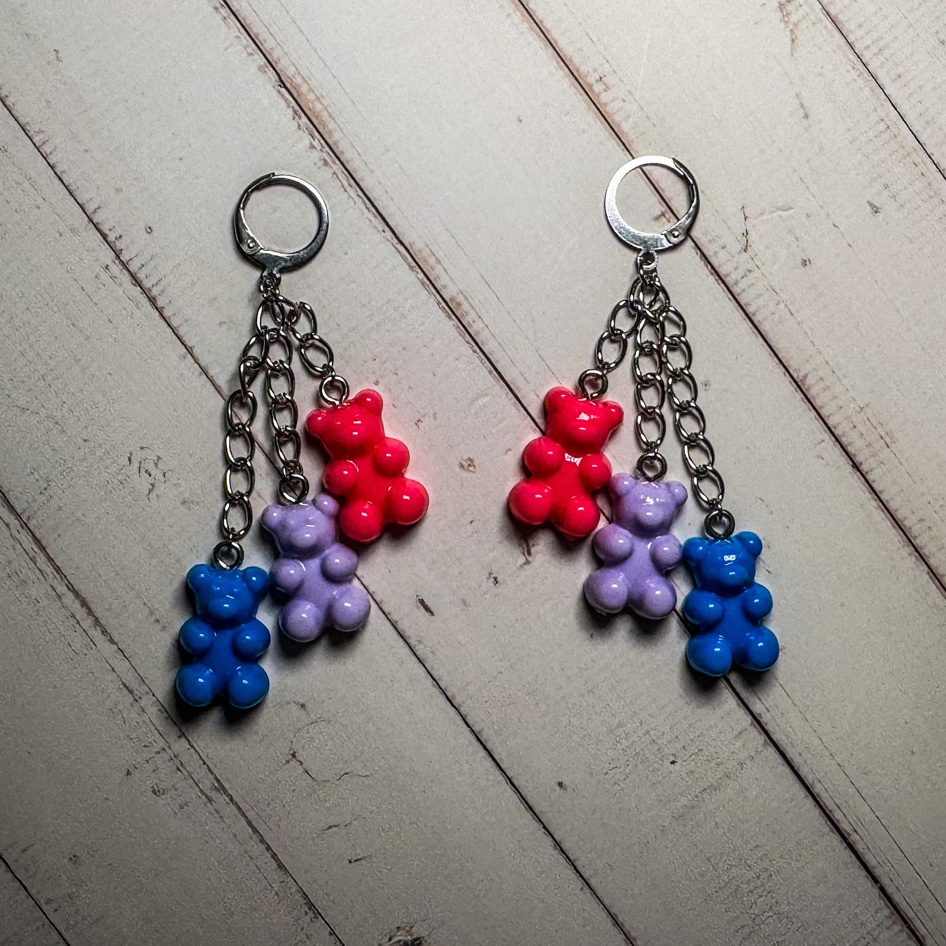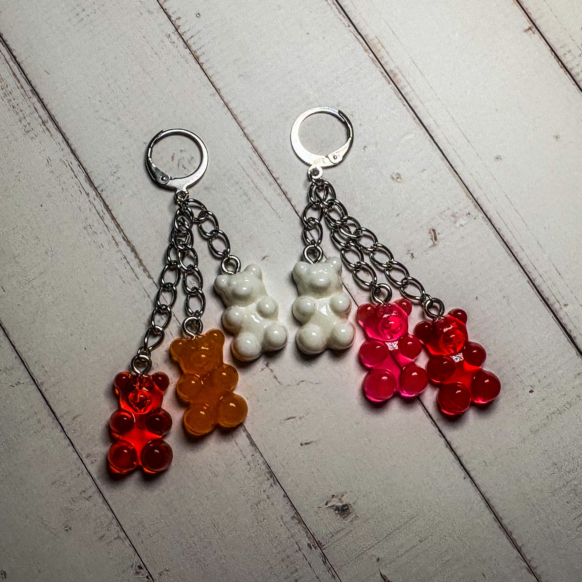 Pendientes colgantes de resina con forma de osito de goma y cierre de clip tipo aro 🌟