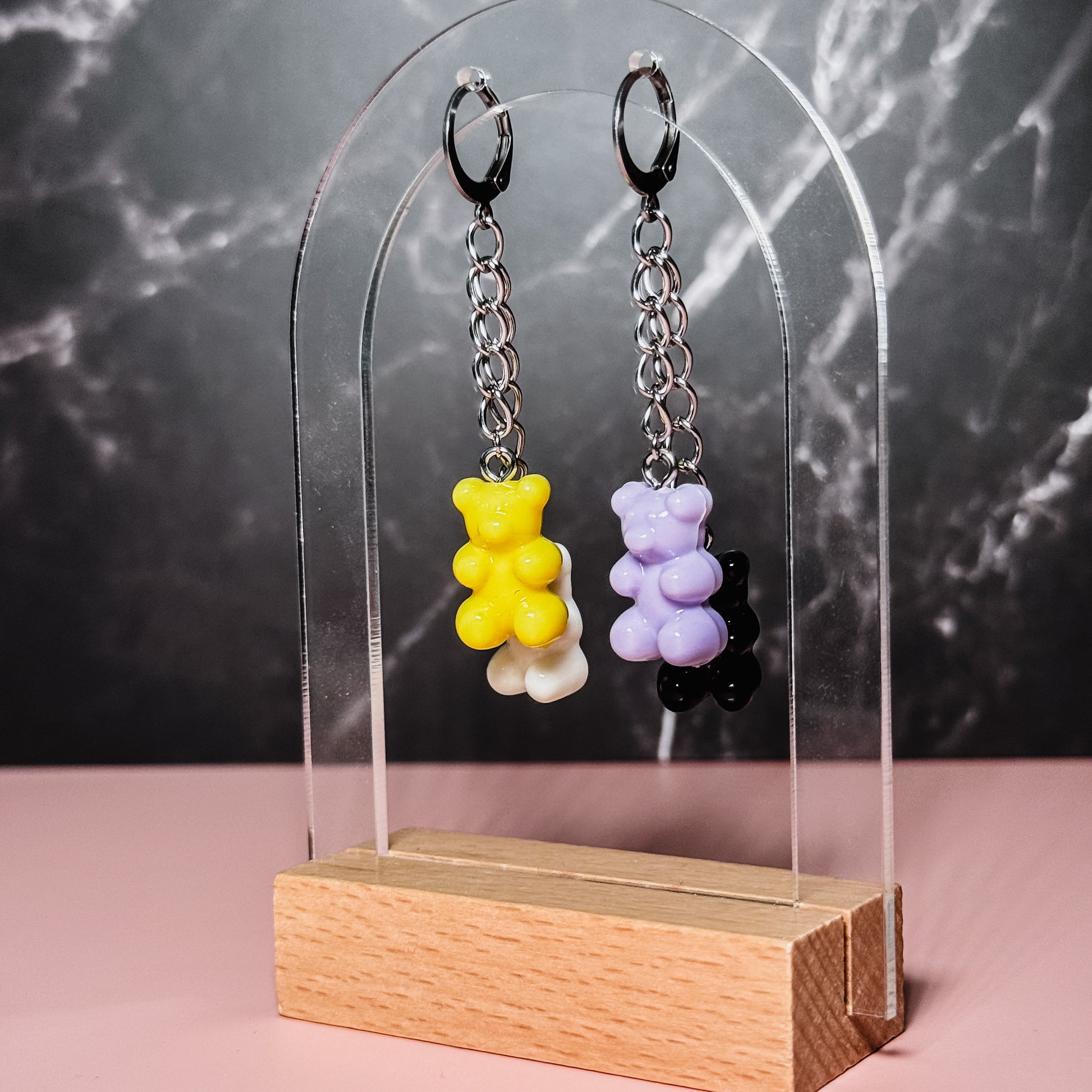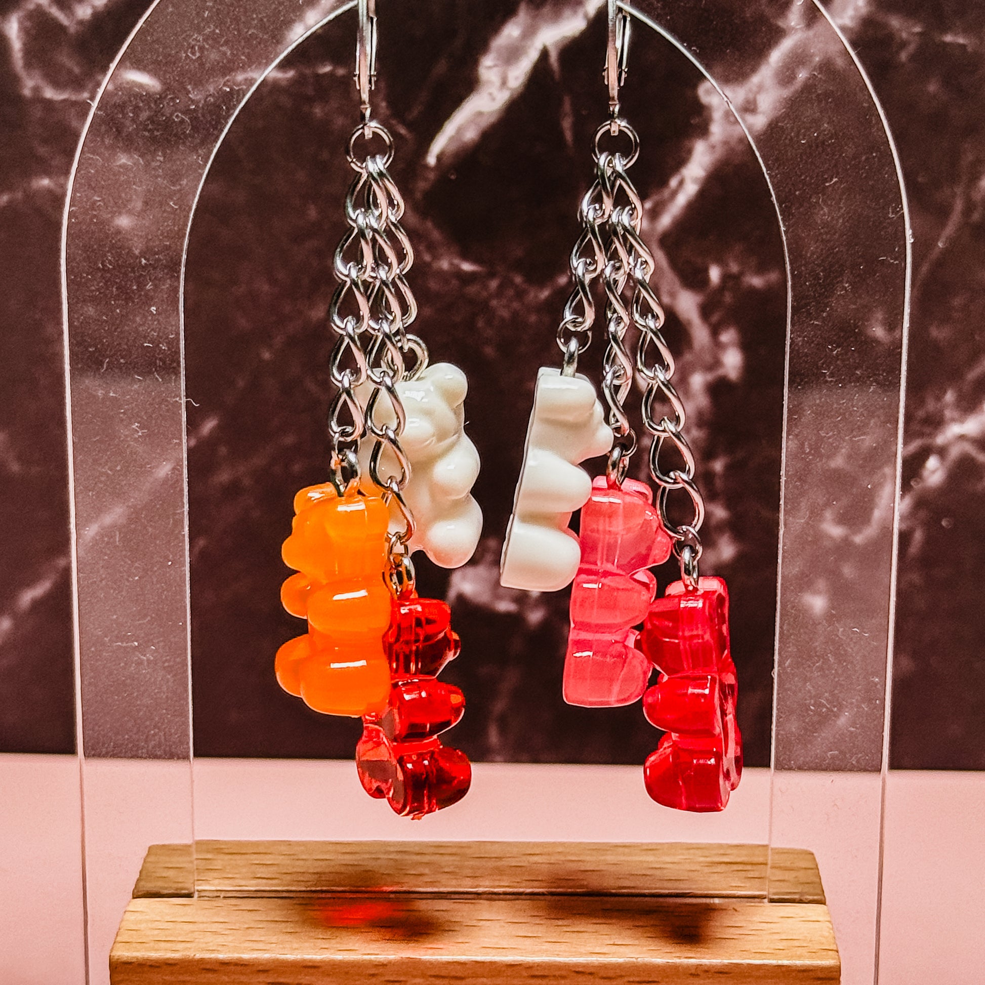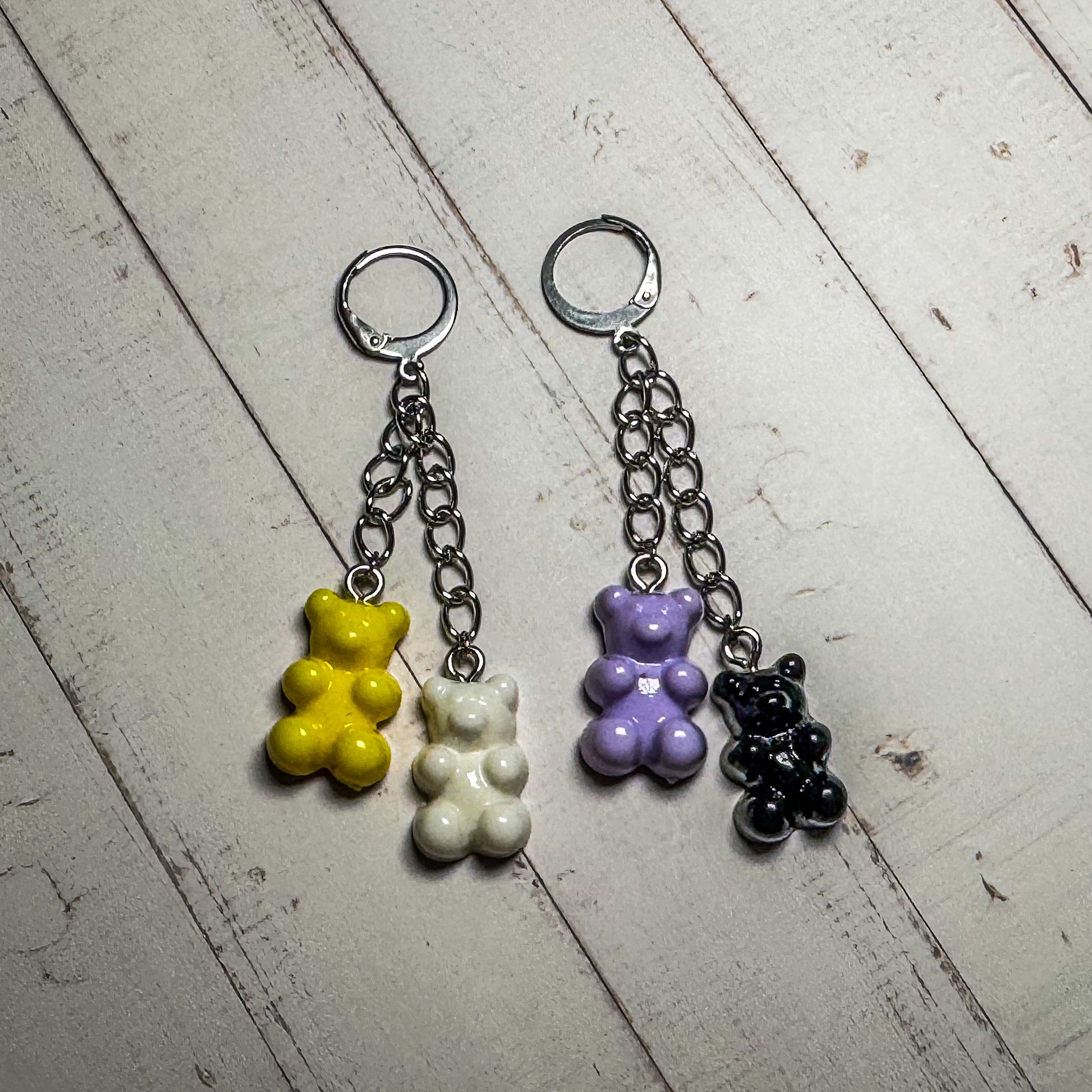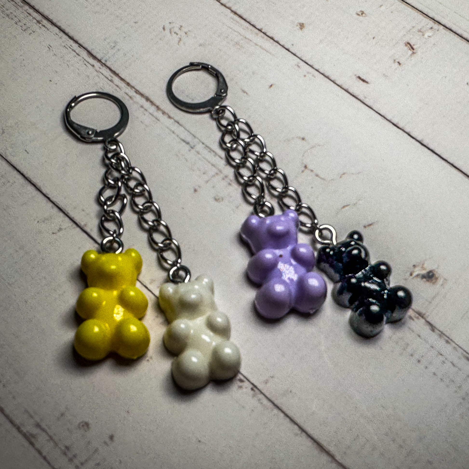 Pendientes colgantes de resina con forma de osito de goma y cierre de clip tipo aro 🌟