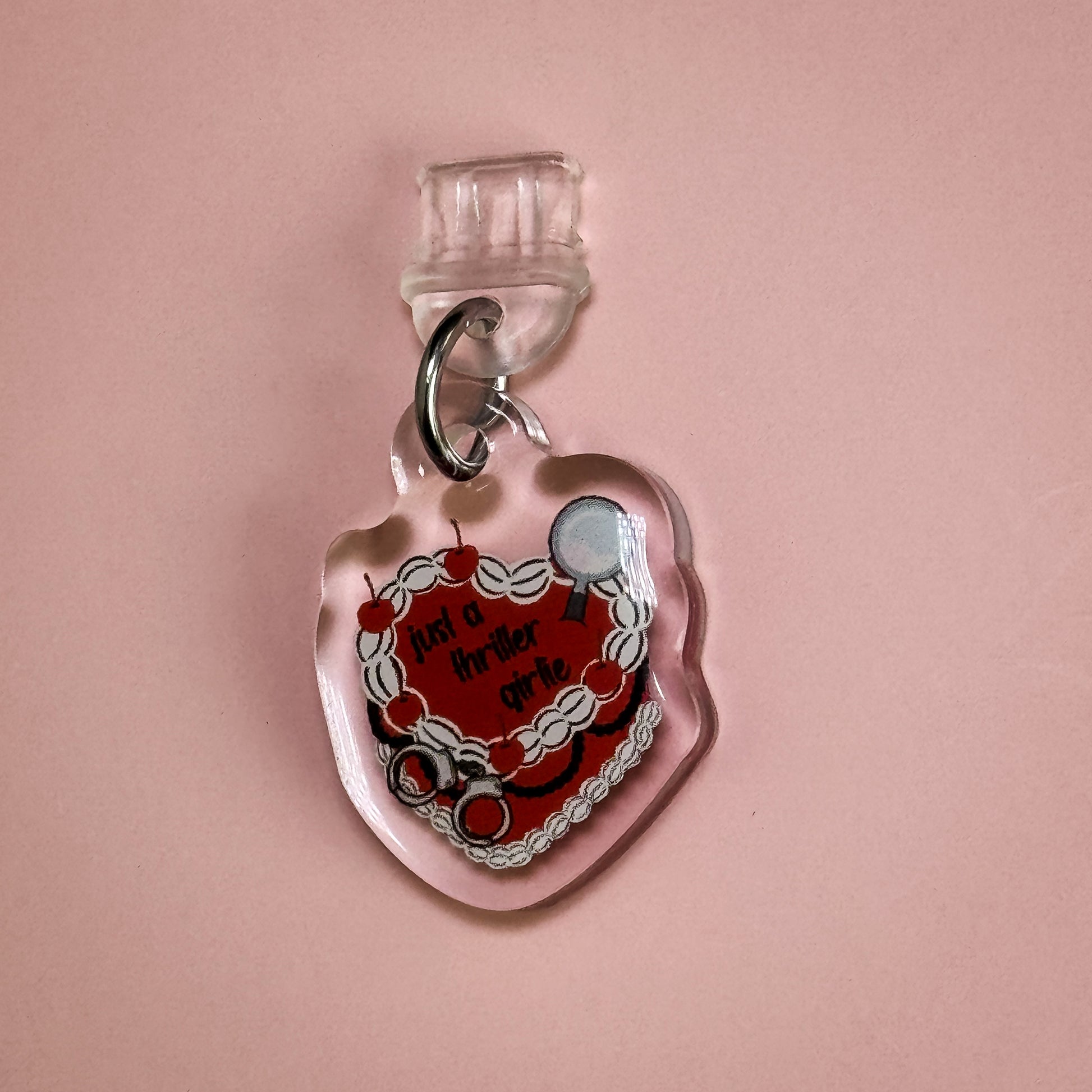 For the reader who loves fast plots, shocking twists, and a little adrenaline with her tea ☕🔪 The Just A Thriller Girlie Cake Charm is as bold and exciting as your favourite whodunit. Designed to celebrate the dark-academia-loving, page-flipping girlies, this charm is perfect for anyone who can’t resist a gripping psychological thriller.