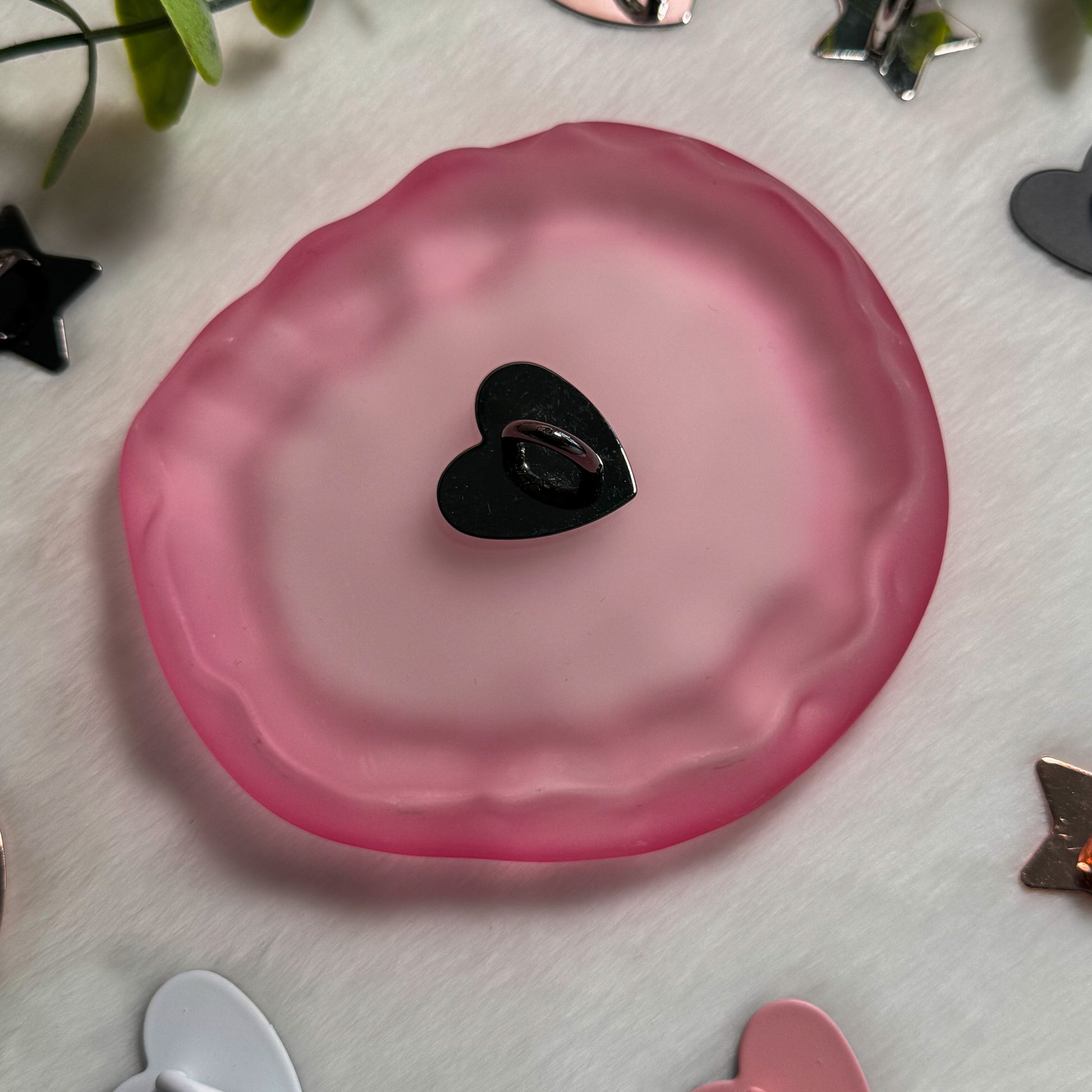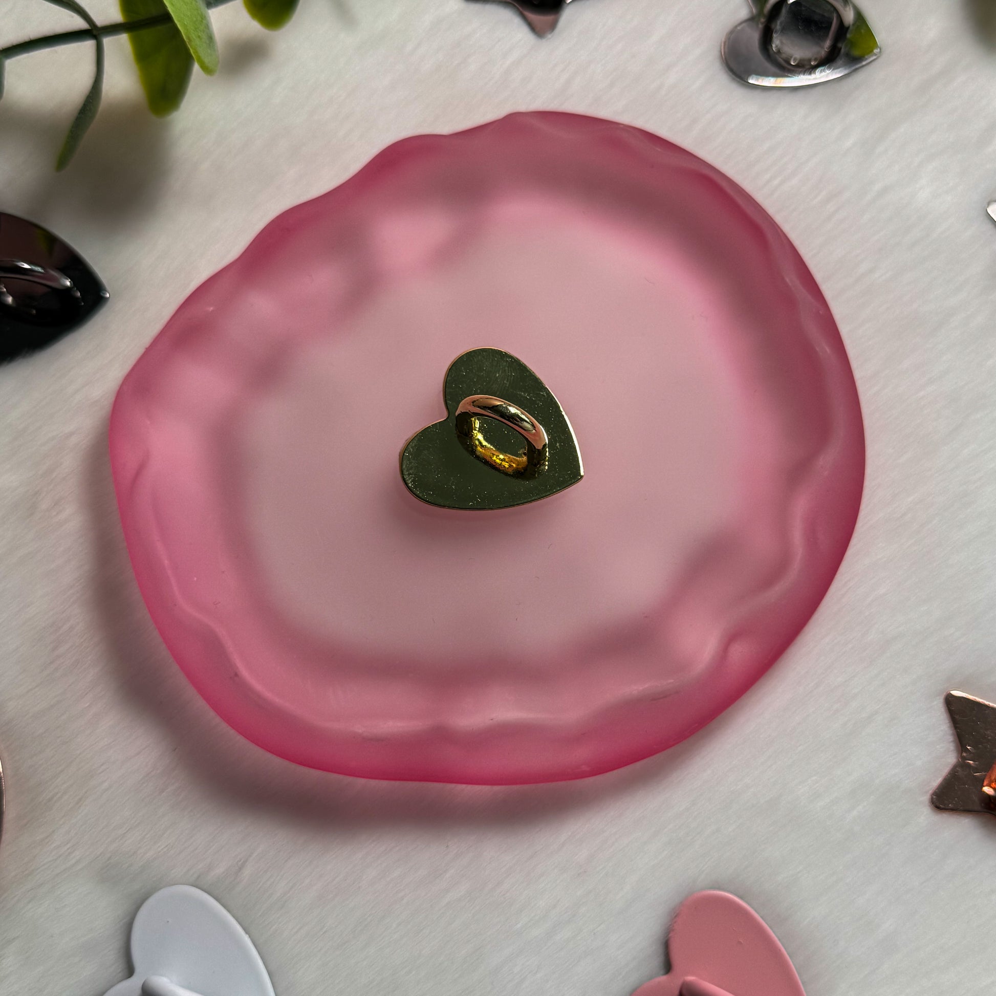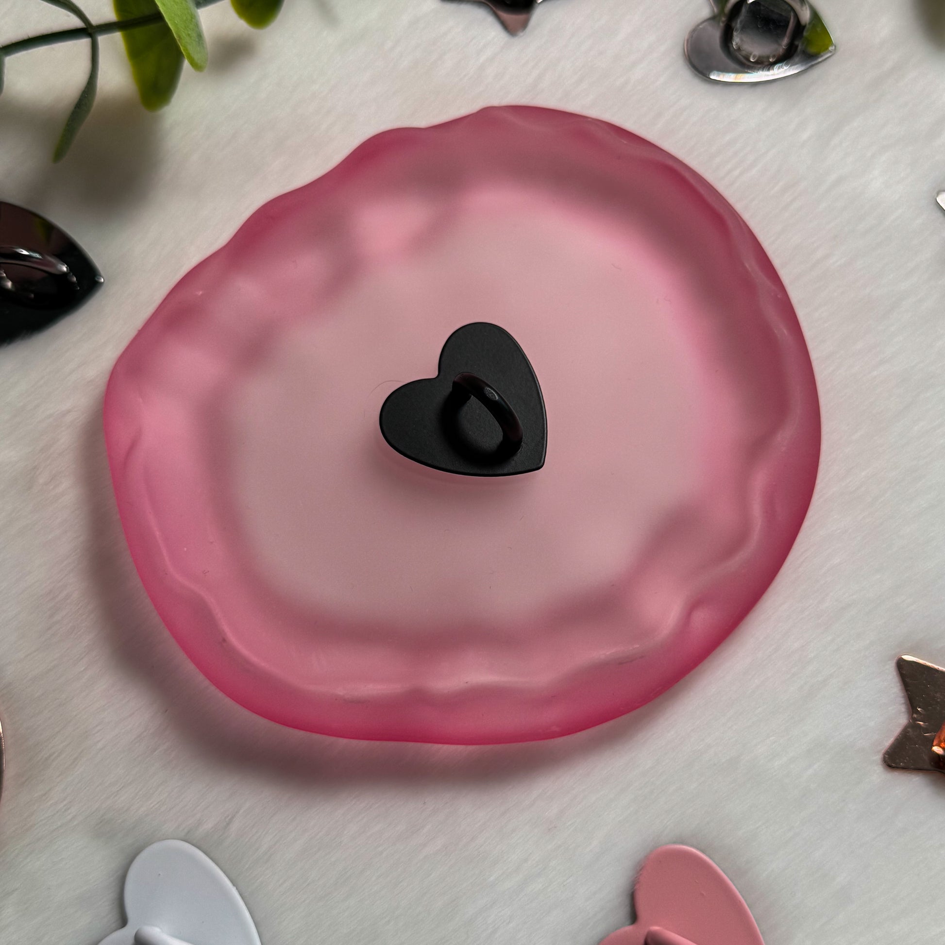 Crafted from durable metal with a strong adhesive backing, it stays securely in place while remaining lightweight and unobtrusive. Its delicate heart design adds a subtle, romantic touch without getting in the way of your grip or daily use.