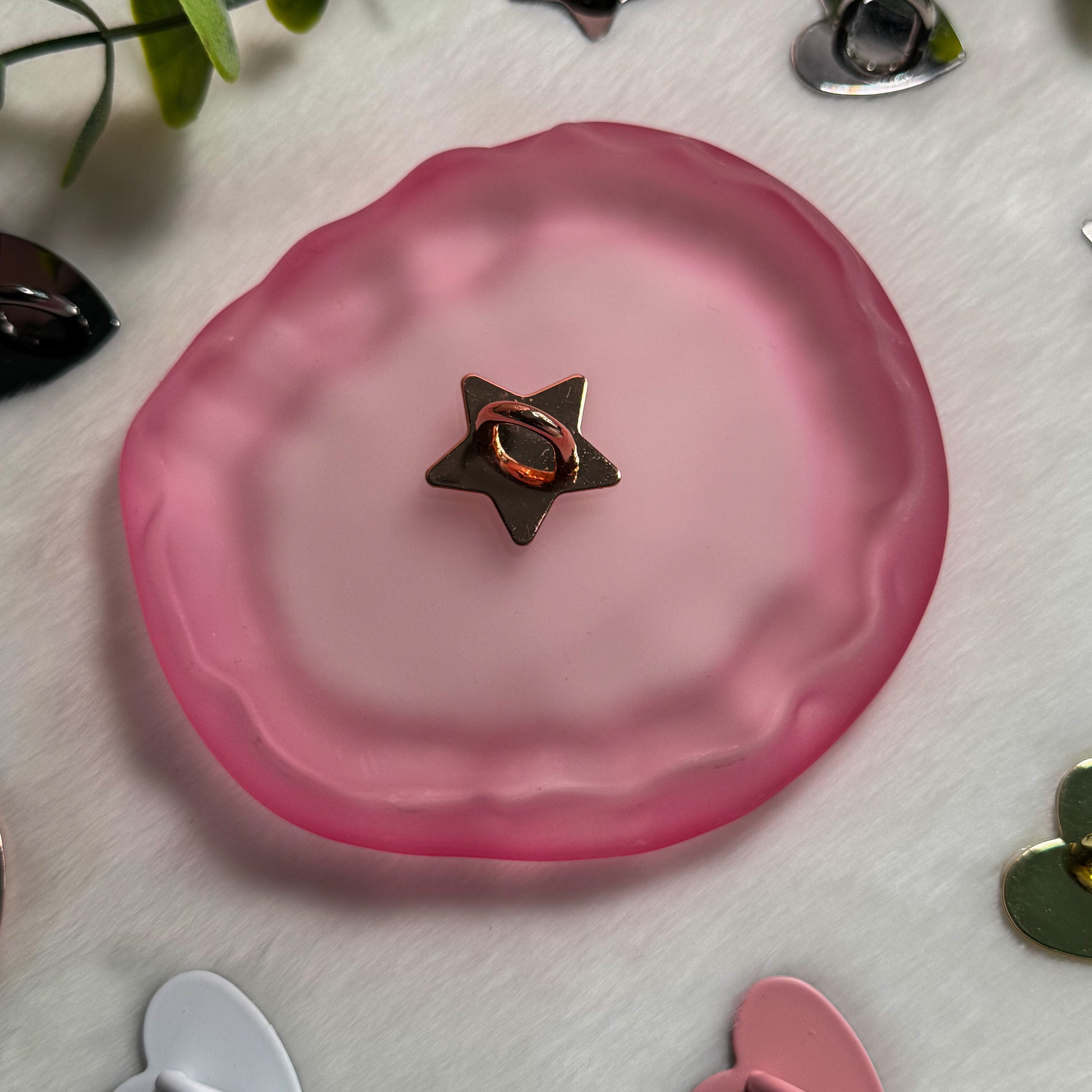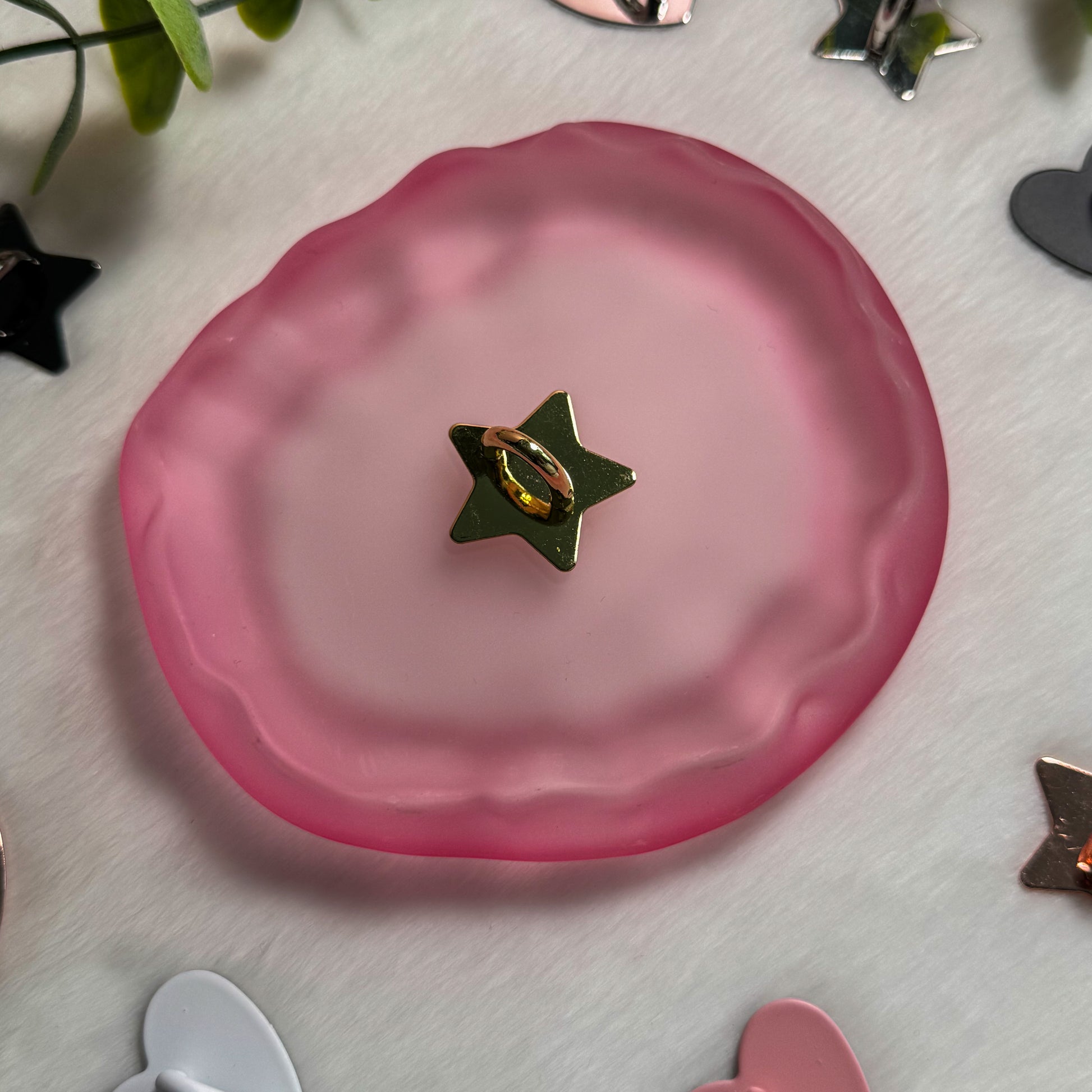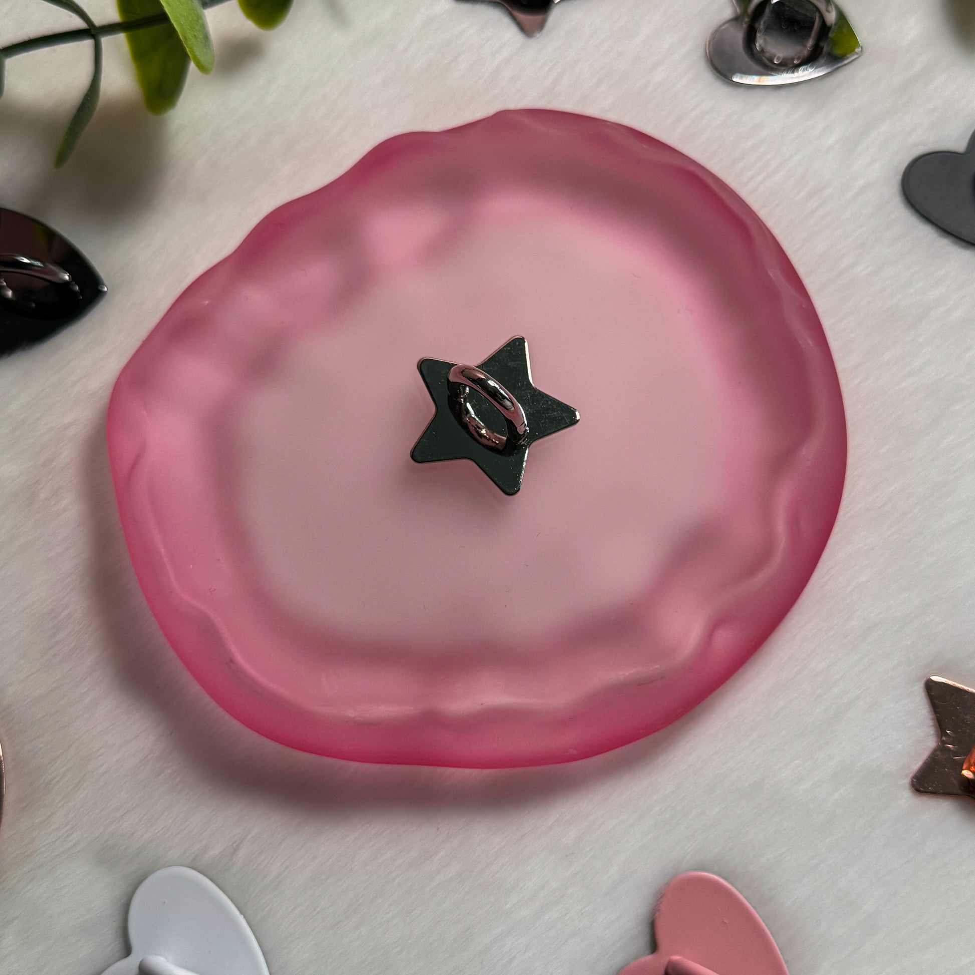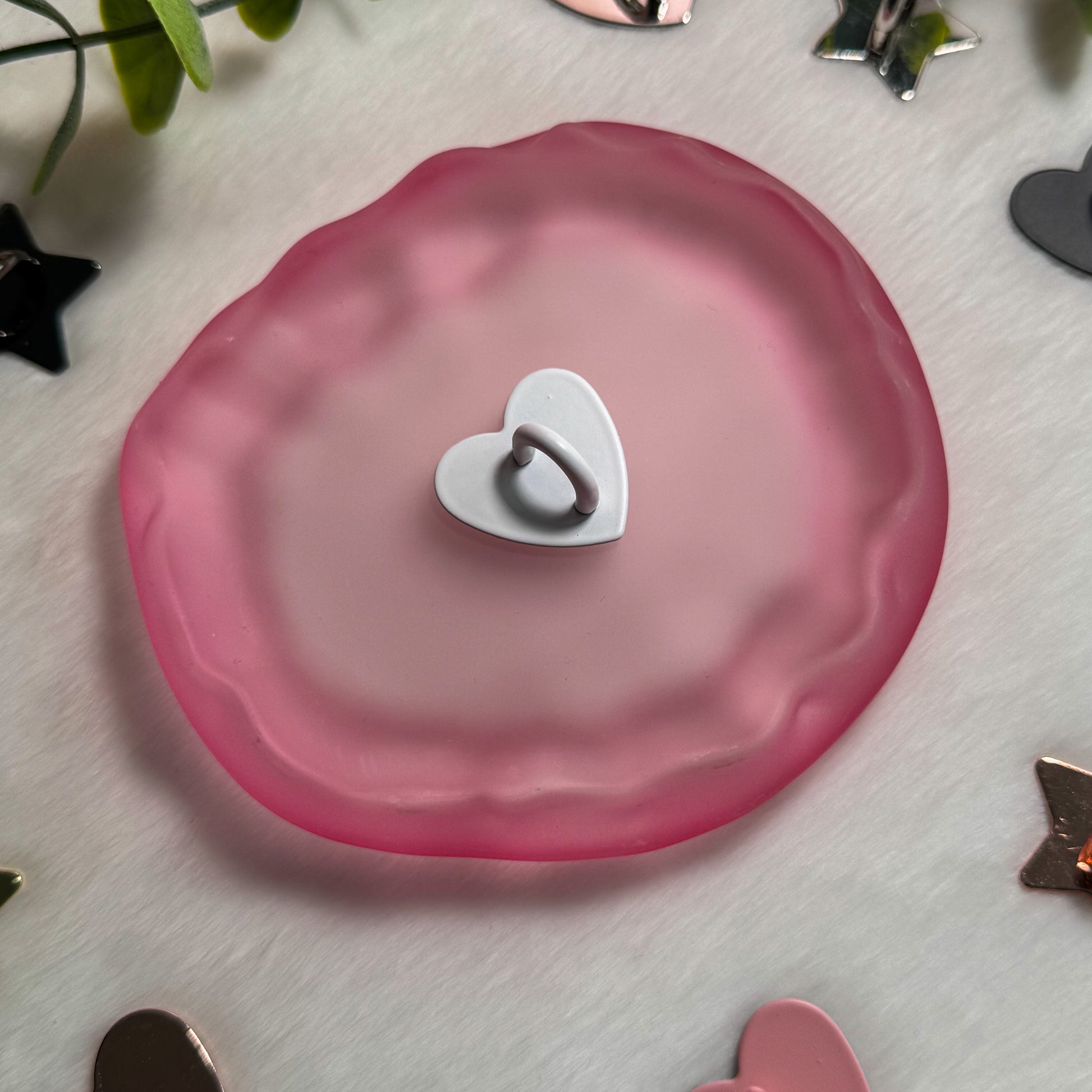 Crafted from durable metal with a strong adhesive backing, it stays securely in place while remaining lightweight and unobtrusive. Its delicate heart design adds a subtle, romantic touch without getting in the way of your grip or daily use.