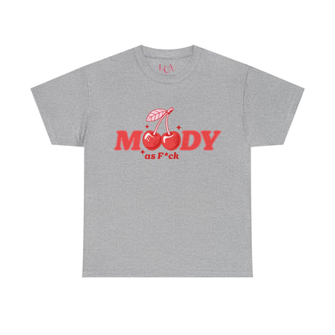 Introducing our stylish Unisex Heavy Cotton Tee, designed for those who embrace their mood with bold expression. The eye-catching design features playful cherry graphics and the phrase "MOODY as F*ck," making it a statement piece that fits perfectly into casual outings, laid-back gatherings, or cozy moments at home. Ideal for anyone with a sense of humor and a love for individuality, this tee is perfect for birthdays, comedy nights, or just a fun day out. Feel carefree and confident as you show off your unique personality, whether you're dressing up for a friend’s event or simply enjoying a relaxed day. Its classic fit ensures comfort, making it a staple for every wardrobe, from young adults to trendsetters. Celebrate your mood and express yourself with this must-have tee! Product features - Shoulder tape for added durability and shape retention - Seamless design reduces fabric waste for a cleaner look - Ribbed collar retains shape while offering comfort - Crafted from specially spun fibers for strength and smoothness - Ethically made from 100% US cotton with Oeko-Tex certification Care instructions - Non-chlorine: bleach as needed - Do not iron - Do not dryclean - Machine wash: cold (max 30C or 90F) - Tumble dry: low heat
